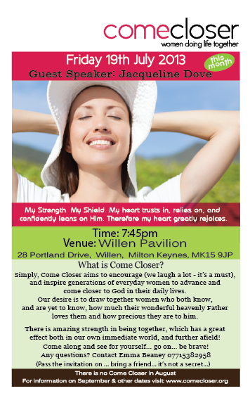 Come Closer this month is on Friday 19th July! It’s at 7:45pm @ Willen Pavilion, 28 Portland Drive, Willen, Milton Keynes, MK15 9JP (which is on Willen Estate).