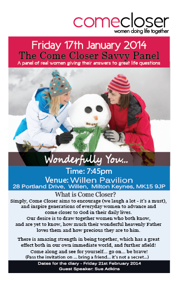 We have a special treat of a ‘Come Closer Savvy Panel’ this month. What’s a savvy panel? I here you ask! Well, we have a panel of 4 beautiful women who are going to share some of their life experiences with us. I know that they will be an absolute blessing. So, please come along and feel free to bring a friend.