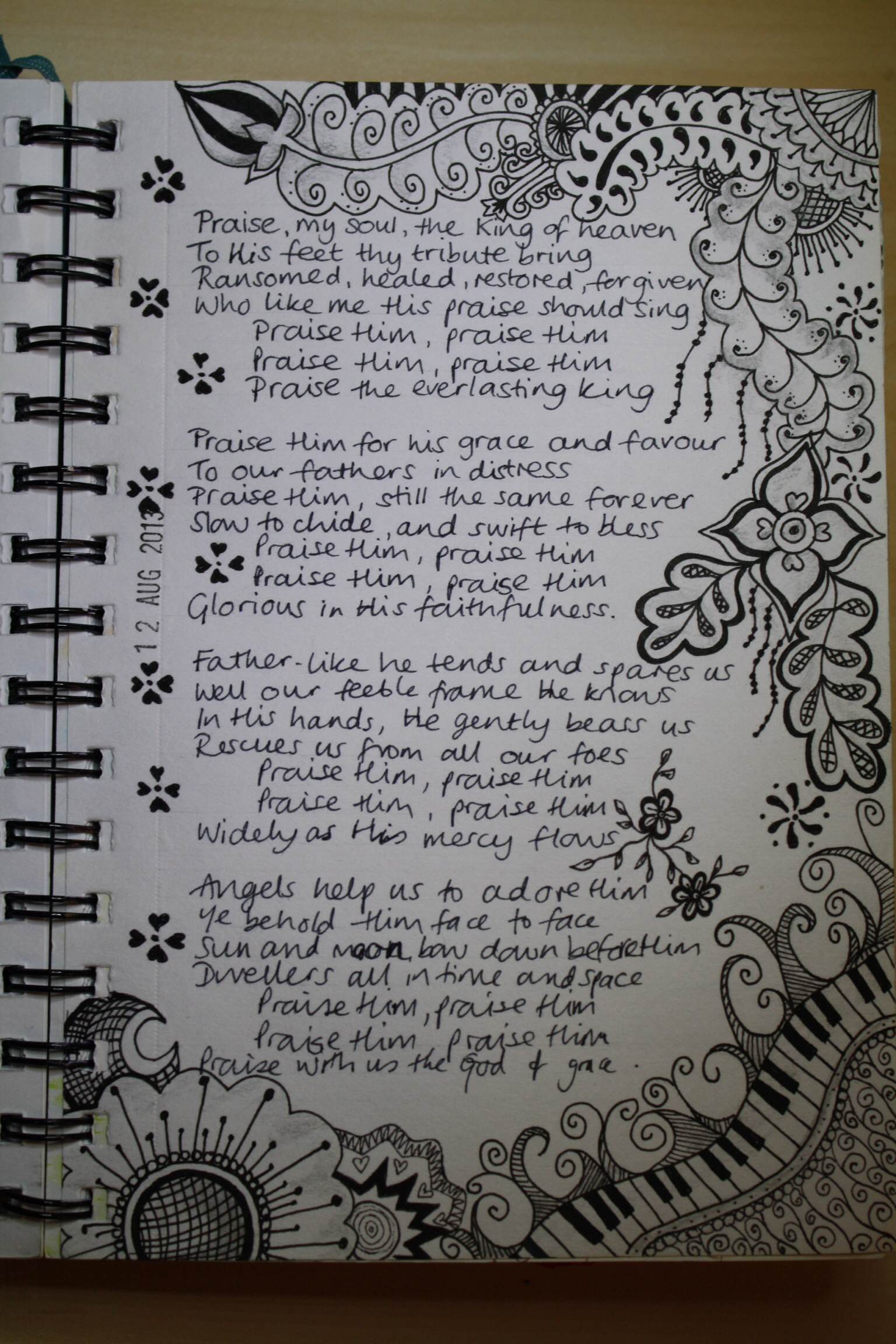 You know when you have a song on your heart, and the words speak into your soul all day long? I simply wrote out the wonderful words to this hymn and then doodled around the edge.