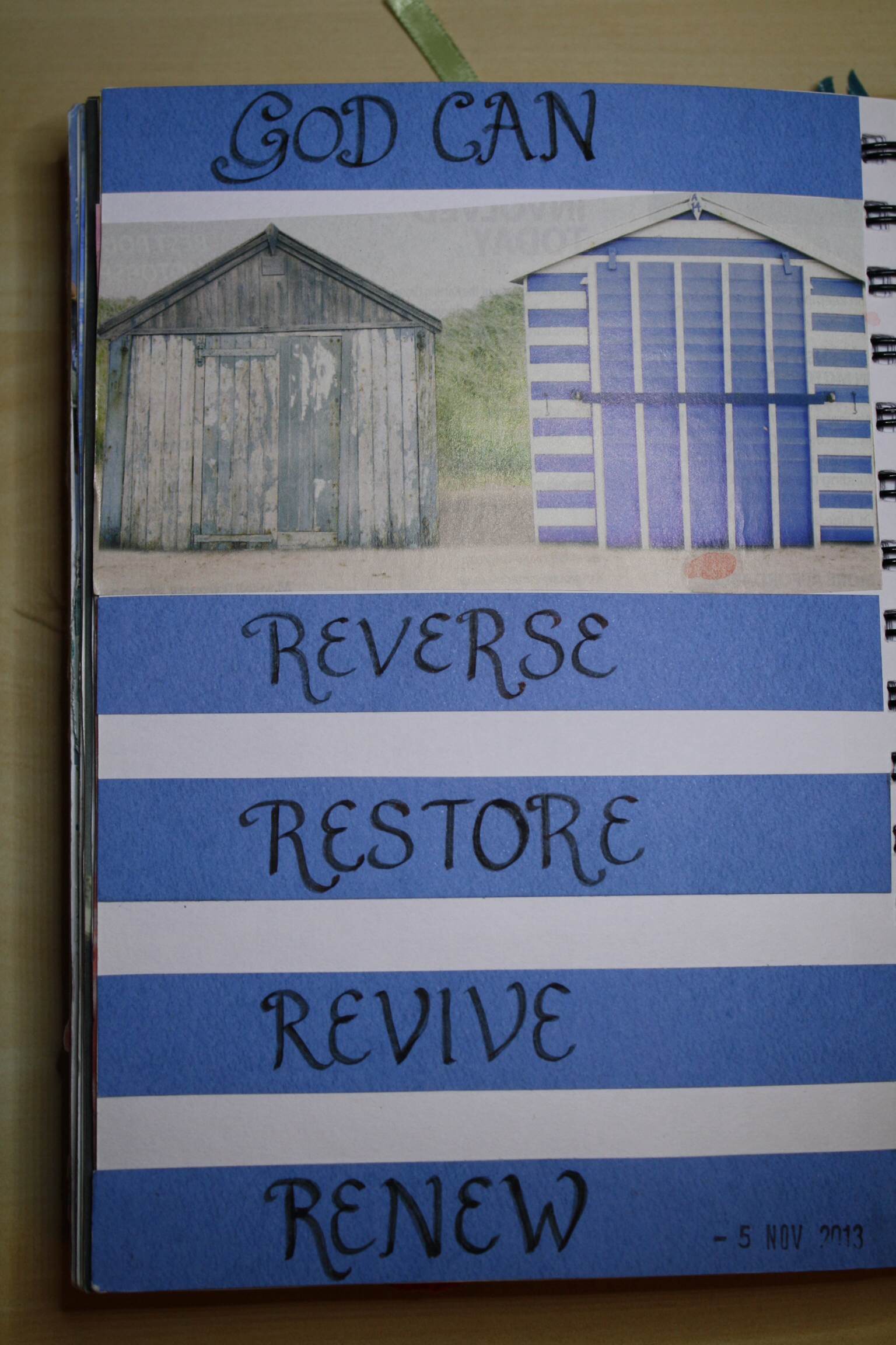 CREATE –Put together a page in your journal reflecting what God has been showing you. I usually do this in the evenings if/when I finally get to sit down for a few minutes, or at weekends, while family life is going on around me I often sit and make a page. Some pages may take just a few minutes, others may take a couple of days, depending on interruptions, but that’s OK!