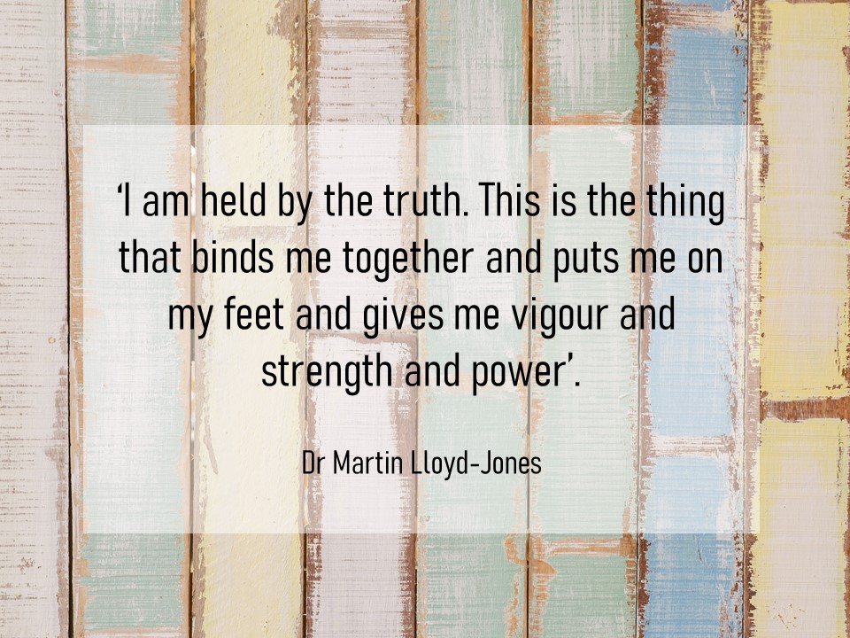 In the world we live in, with its noise and distractions, we need to know God’s Truth (with a capital ‘T’). His Word is Truth. It gives life, direction, correction, hope and strength. Dr Martin Lloyd-Jones in his writings about the belt of Truth, says this about God’s Word: