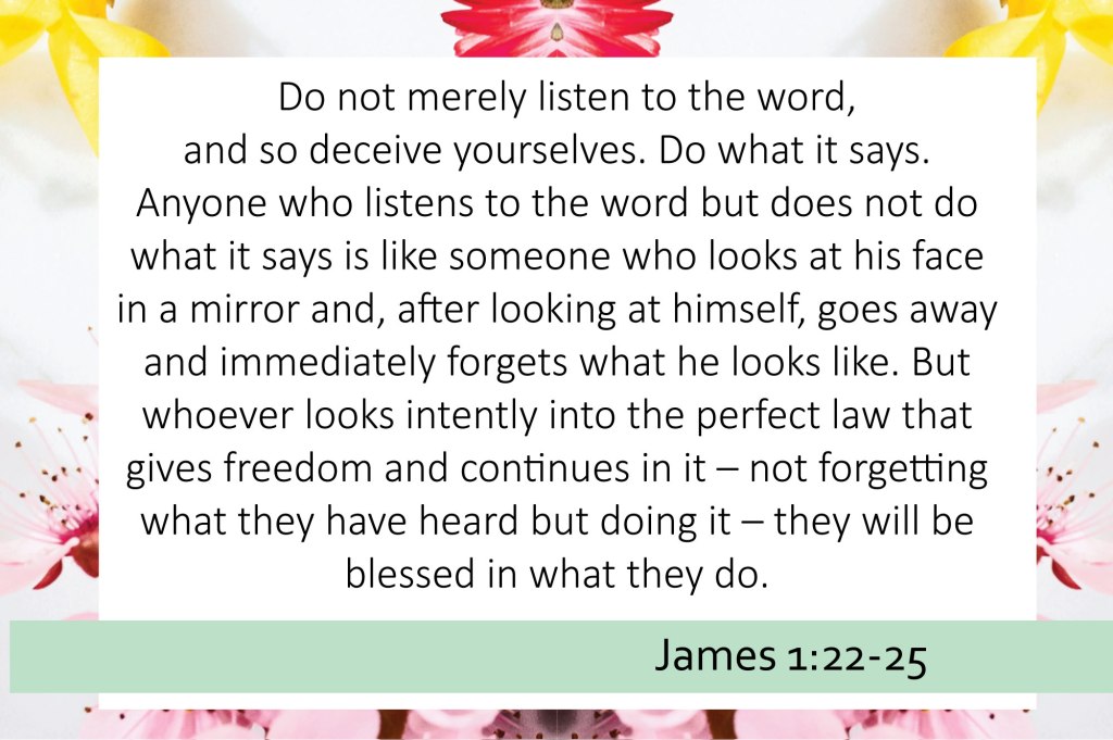 Our hope is that God’s word would not only be head knowledge, but we would intentionally allow it to change our hearts and actions. James 1: 22-25 says:
