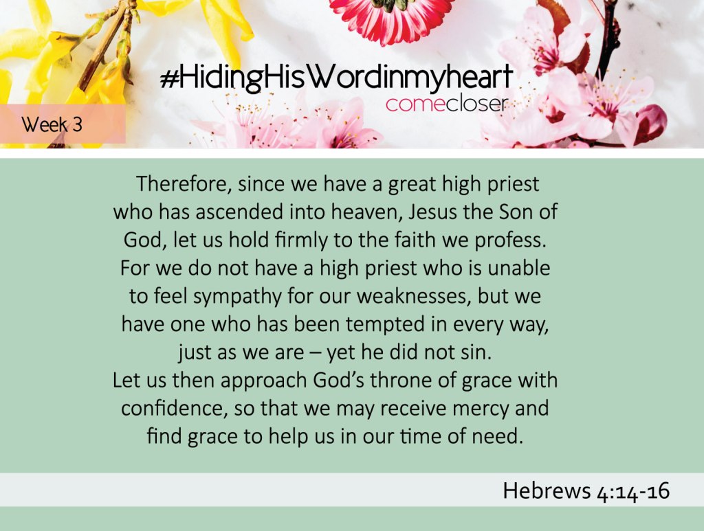 This week’s Scripture is so encouraging and important to remember. It’s Hebrews 4:14-16 which talks about our altogether lovely and worthy Jesus.