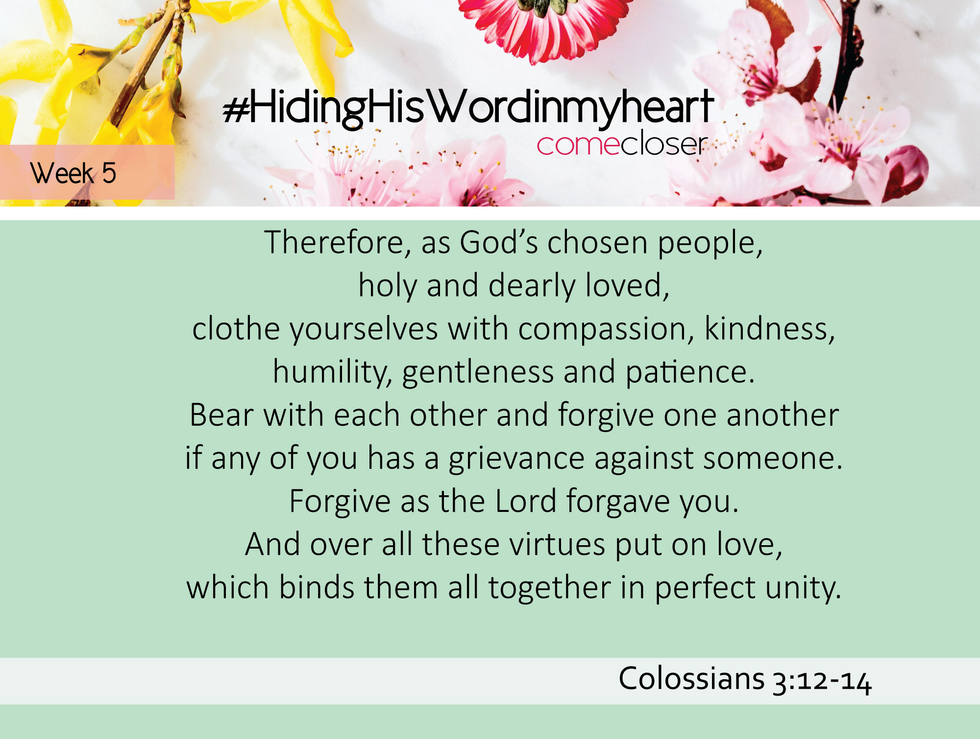 This week’s Scripture is found in Colossians and tells us what to ‘put on’. It’s Colossians 3:12-14.