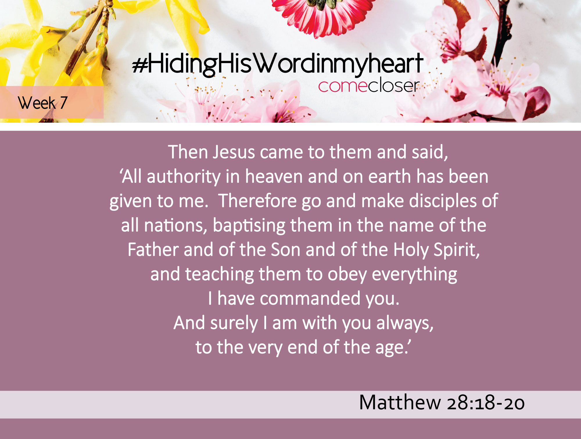 This final week’s Scripture is found in Matthew and tells us the last command Jesus gave His disciples. It’s a command that is just as important to us, as His disciples, today. It’s Matthew 28:18-20.