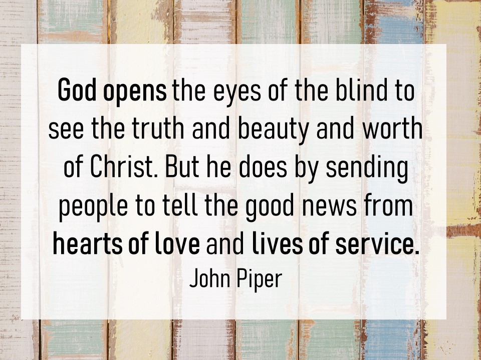 P.S: We leave you this week with a quote from John Piper. As we look to fulfilling Jesus’ commandment, we do so motivated by God’s love in us and lives surrendered to His service.