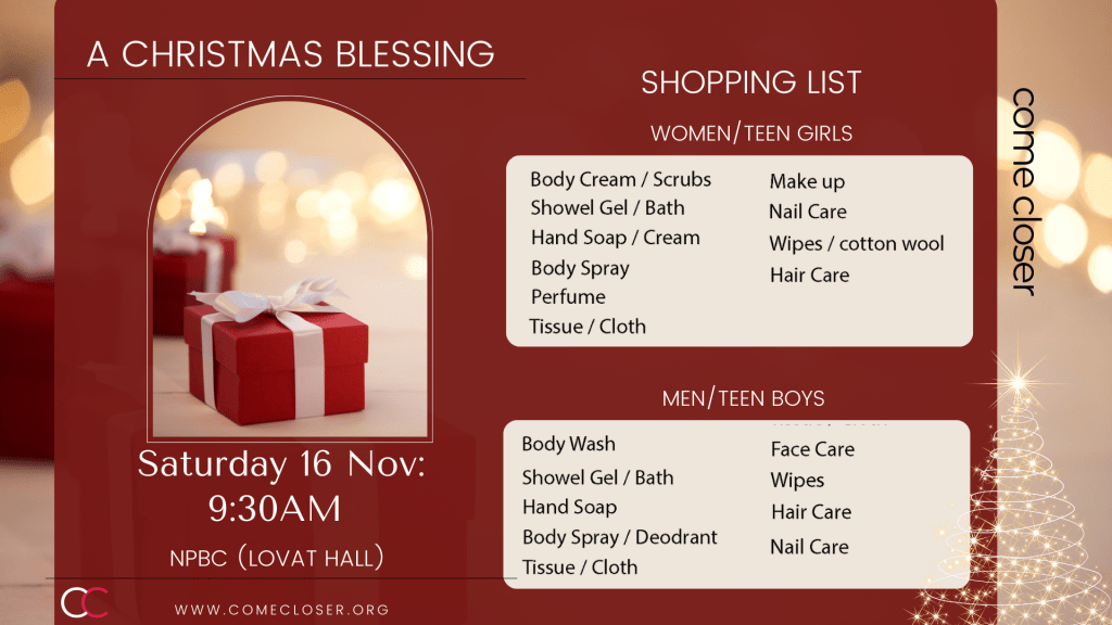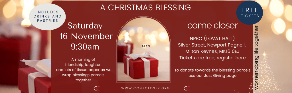 Join us on Saturday, 16th November, for a special morning as we wrap the Come Closer Christmas Blessing parcels. To help us with catering, it would be great if you registered for a free ticket here.